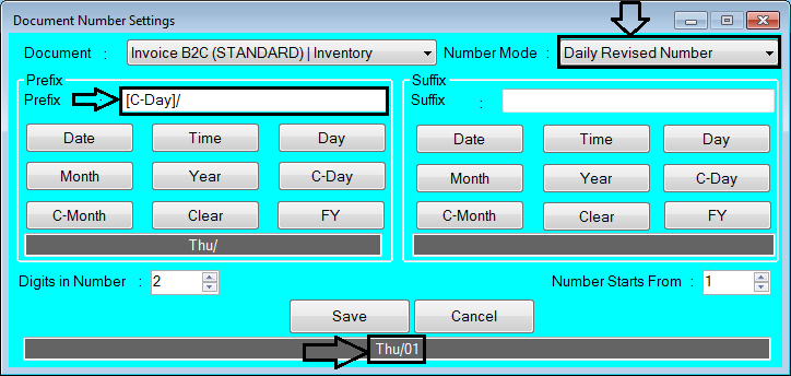 - In Daily Revised Number (Number Mode) we suggest you to Select Prefix as "Day" or "C-Day" so that Day will be indicated first then after Number will be identified, as shown in below image